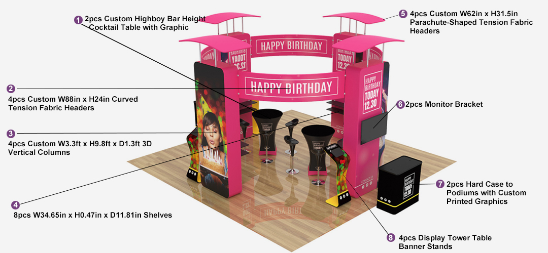 - Designed for 20' x 20' tradeshow stalls